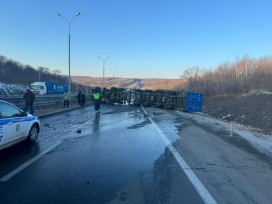 В Приморье перевернулась фура, полностью перекрыв участок федеральной трассы «Уссури»