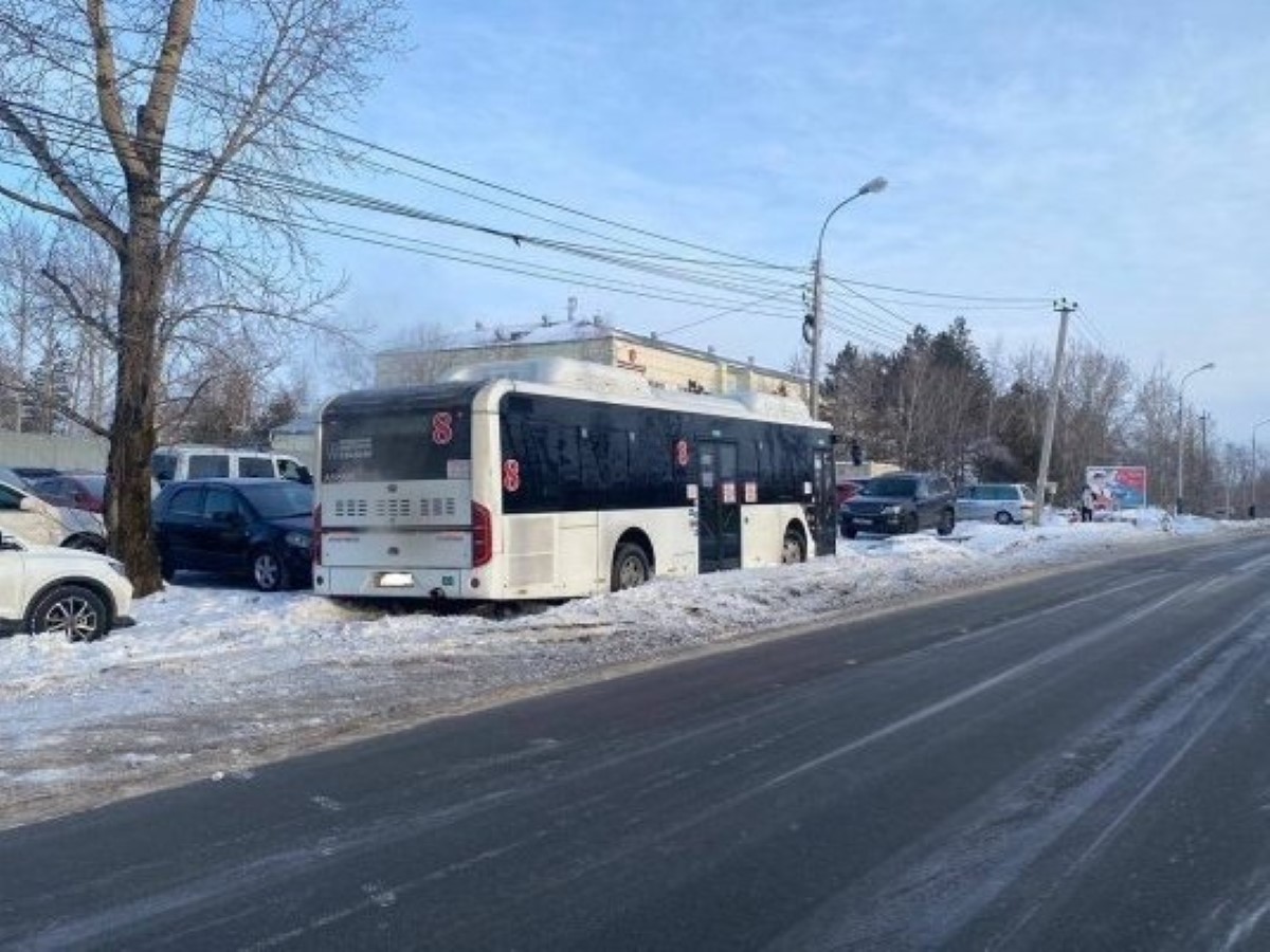 В Хабаровске пассажирский автобус №8 выехал на «встречку» и врезался в три машины
