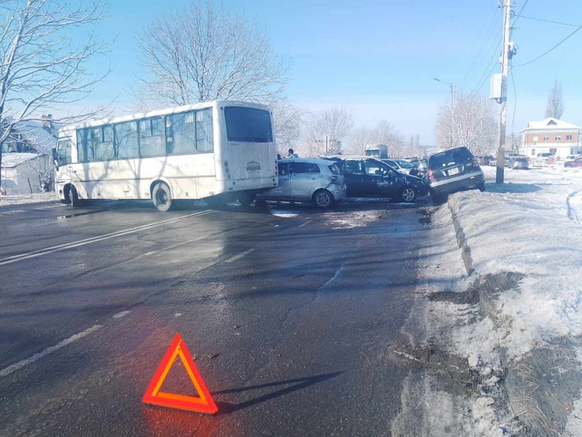На улице Шоссейной города Находки в утренний час пик столкнулись сразу 5 транспортных средств: четыре легковых автомобиля – «Тойота Надя», «Тойота Витц», «Тойота Королла Спасио» и «Тойота Хайс», а пятым участником этого ДТП стал пассажирский ПАЗ. Он следовал по маршруту № 610 «Находка – Сергеевка», в момент ДТП в нем находились всего 10 пассажиров, никто из них не пострадал. Травмы в этой массовой аварии получили двое пассажиров иномарок: 69-летний мужчина, ехавший в «Хайс», и 20-летняя пассажирка «Витц». Обоих госпитализировали.