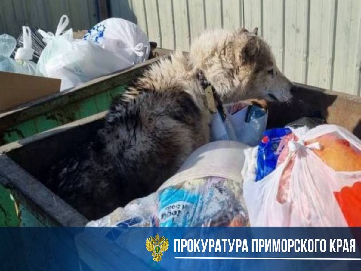 В Находке породистую собаку избили и полуживую выбросили в мусорный контейнер