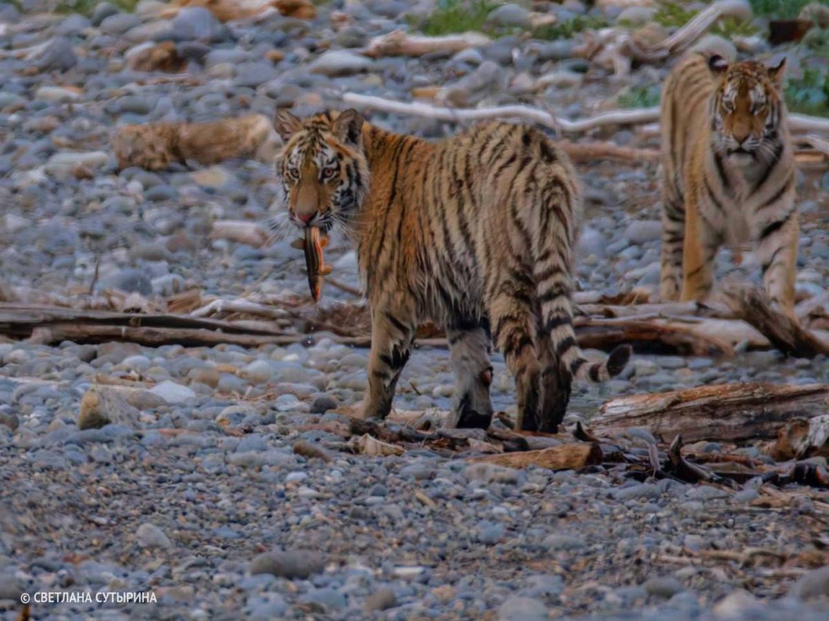Тигры, в отличие от медведей, не едят рыбу. Однако голод не тетка. Уникальные фотокадры – три тигренка на рыбалке – удалось запечатлеть Светлане Сутыриной, директору Сихотэ-Алиньского заповедника, который простирается в Приморском крае на территории трёх районов: Тернейского, Красноармейского и Дальнегорского.