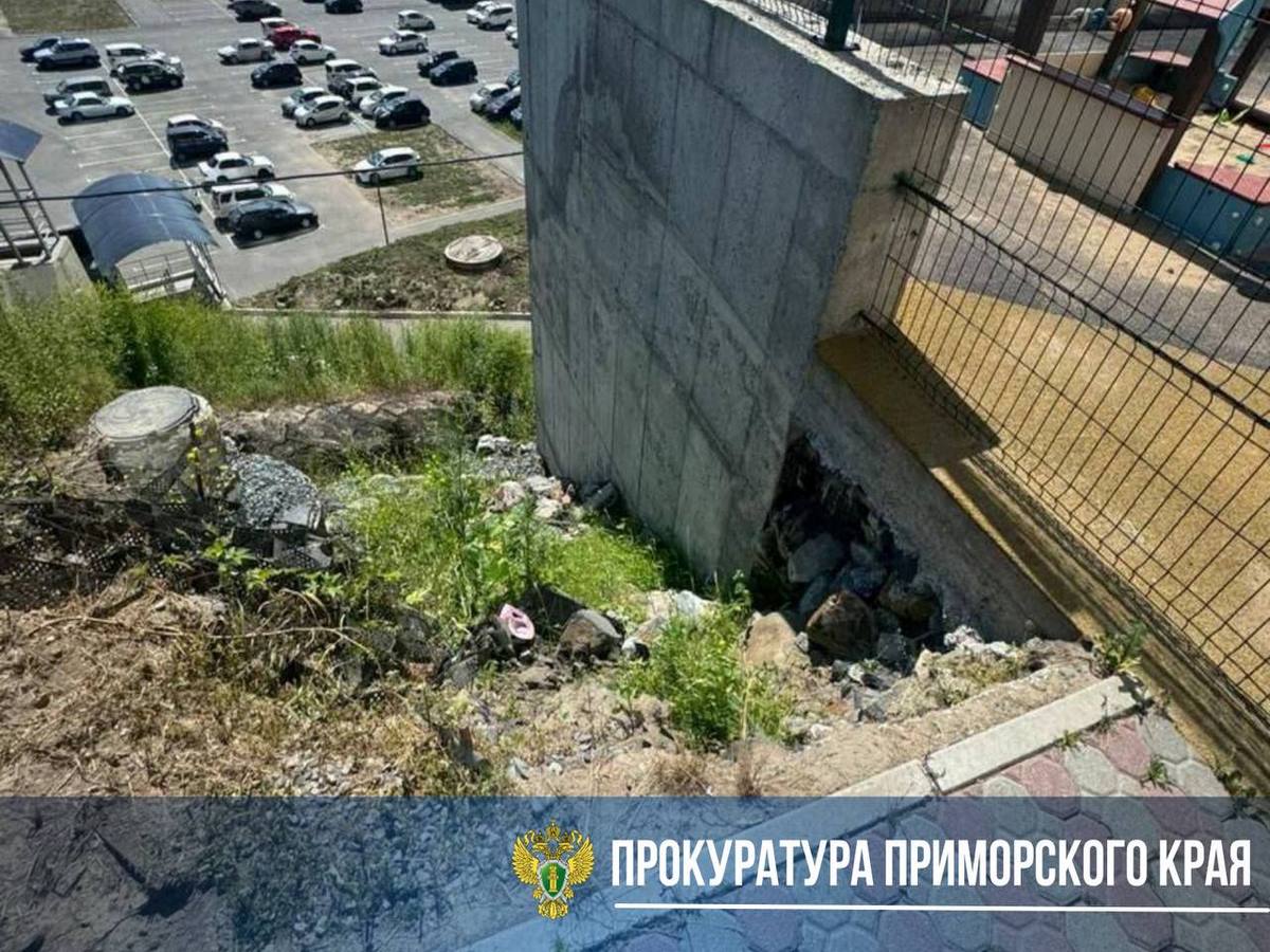 Во Владивостоке 4-летняя девочка упала в глубокий овраг, возникший возле детской площадки