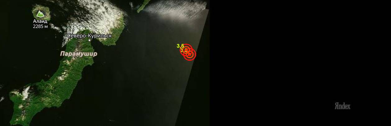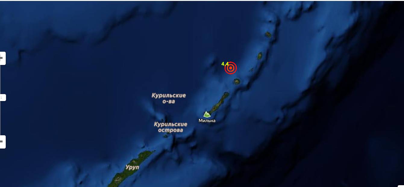 Мы видим, что были толчки недалеко от Курил в море в 4,4 балла. Было несколько толчков неподалеку от Северо-Курильска.