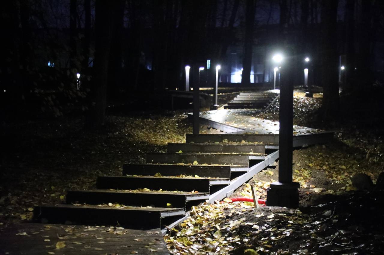 «Проинспектировали Октябрьскую набережную. Здесь продолжают прокладывать дорожки, и лесенки, устанавливать малые архитектурные формы, навигационные указатели и стелы. Уже подключили освещение. Создадим здесь комфортную и уютную зону для прогулок. ».