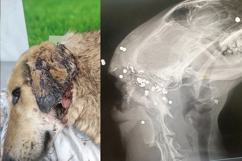 Казбек был экстренно доставлен в ветклинику, где ему оказали первую помощь. Рентген показал ужасающую правду: в черепе пса было обнаружено 19 дробин. Кто-то расстрелял безобидное животное.