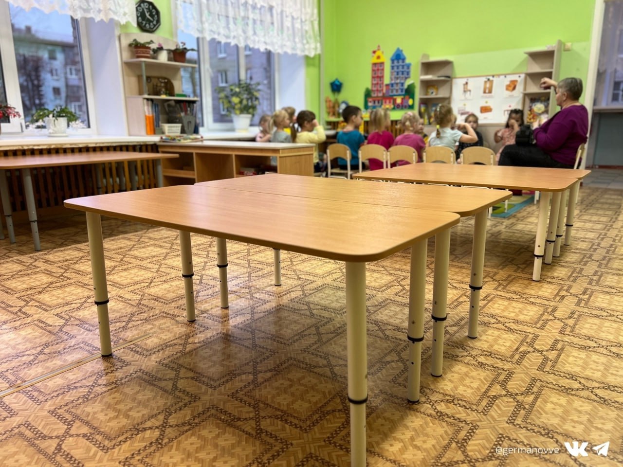 В детском саду №85 уже завершилась первая фаза обновления: новые столы и стулья расставлены по местам, создавая уютную и функциональную среду для ребят.