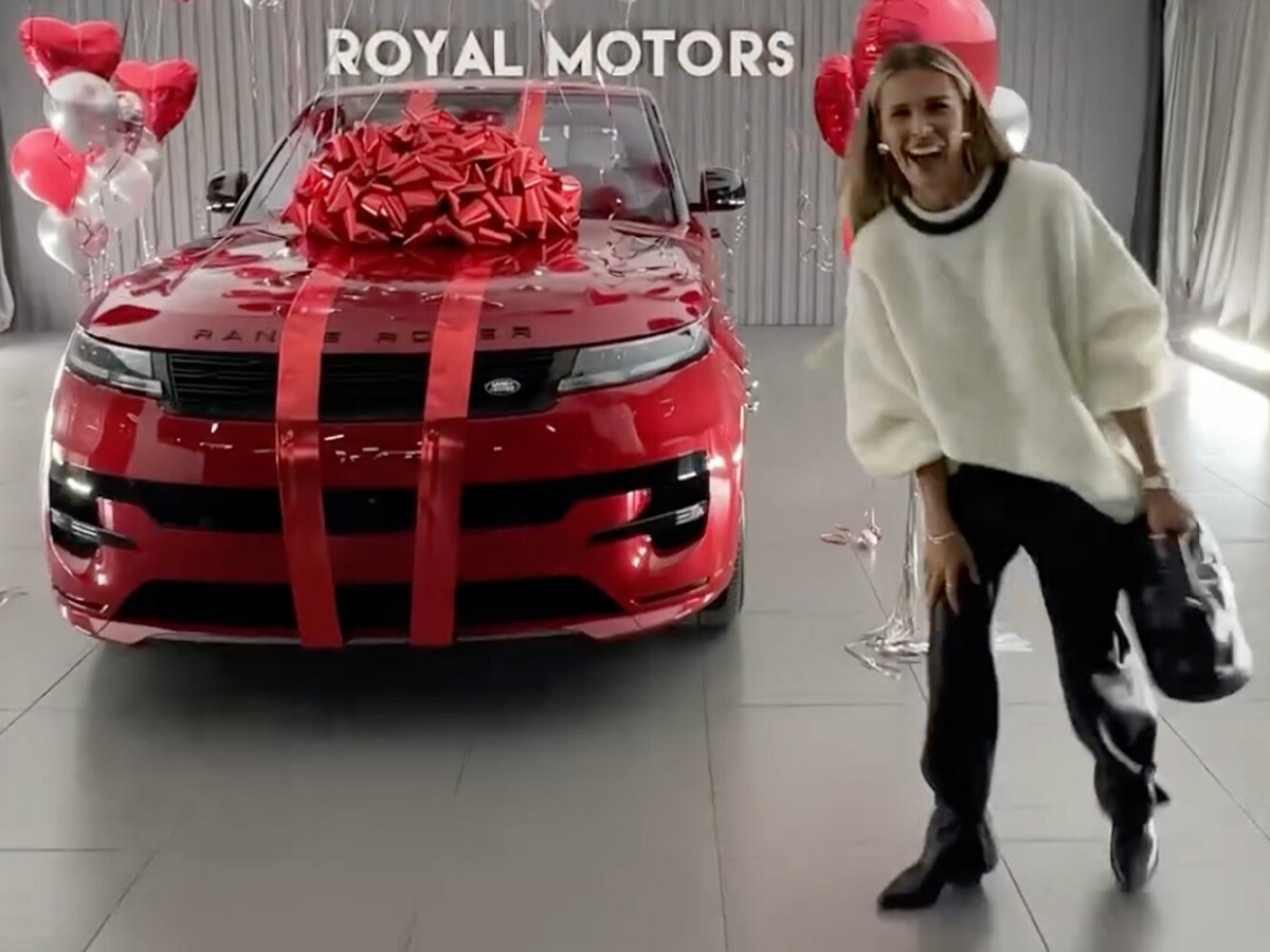 На фотографии в Instagram* артистка стоит рядом с красным Range Rover, который упакован как большой подарок.