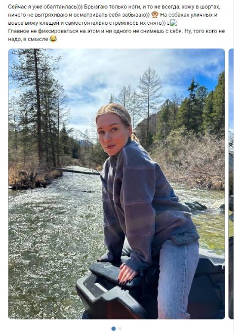 «Перед тем, как выйти из дома, я полфлакона средства от клещей на себя выливала, а по возвращению трясла одежду в душевой, голая у зеркала выгибалась в невероятных позах, осматривая себя в зеркало», - делится воспоминаниями с подписчиками актриса.