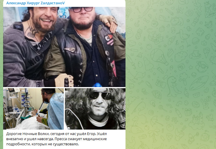 Егору было всего 64 года и о его смерти решил рассказать давний друг Зайцева Александр Задалстанов, более известий под именем Хирург. Егор, также как и Александр, был основателем байкерского клуба «Ночные волки», поэтому Хирург отлично знал Егора и был его близким другом. Ещё 31 мая друзья отмечали 35-летний юбилей клуба и Зайцев присутствовал на мероприятии.