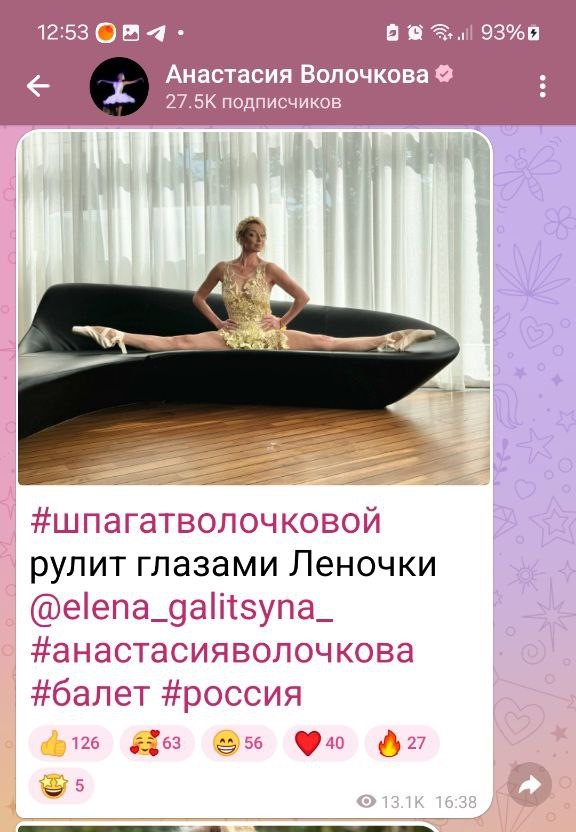 «Шпагат Волочковой рулит глазами Леночки» – прокомментировала свой пост актриса.
