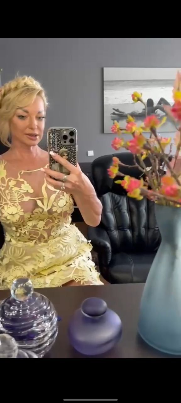 В этот раз Анастасия продемонстрировала роскошное полупрозрачное платье-мини с золотыми вставками в виде растительного орнамента. Поскольку фасон платья не подразумевает наличия нижнего белья, актрисе пришлось отказаться от бюстгальтера. Балерина записала видео и рассказала о подготовке к съёмке. При этом, знаменитость поинтересовалась у подписчиков о том, насколько она красива.