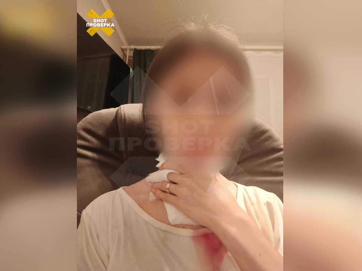 Она подтвердила свои слова фотографиями открытой бутылки без горлышка и раны на шее. У женщины есть справка из травматологического отделения.