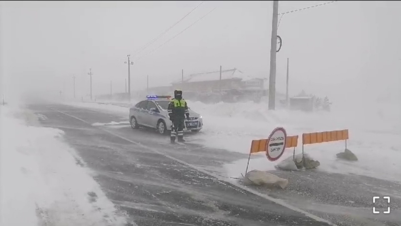 Плохая видимость, шквалистый ветер и обильный снегопад стали причиной закрытия практически всех трасс, региональных и федеральных.