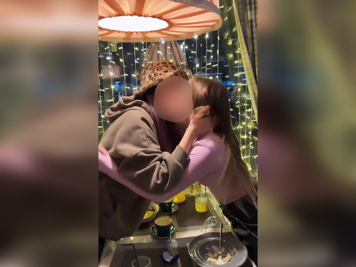 Эти события происходят в одном из краснодарских кафе. Из видео понятно, что одна девушка сделала второй предложение и подарила колечко.