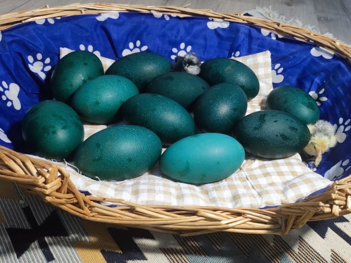 Малахитовые яйца снесли страусы Эму на псковском подворье «Птичий дворик»