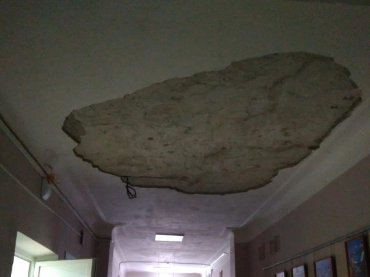 В ходе проверки санитарно-технического состояния здания детской школы искусств имени М.А. Балакирева было установлено, что обрушение части потолка случилось в коридоре левого крыла на первом этаже.