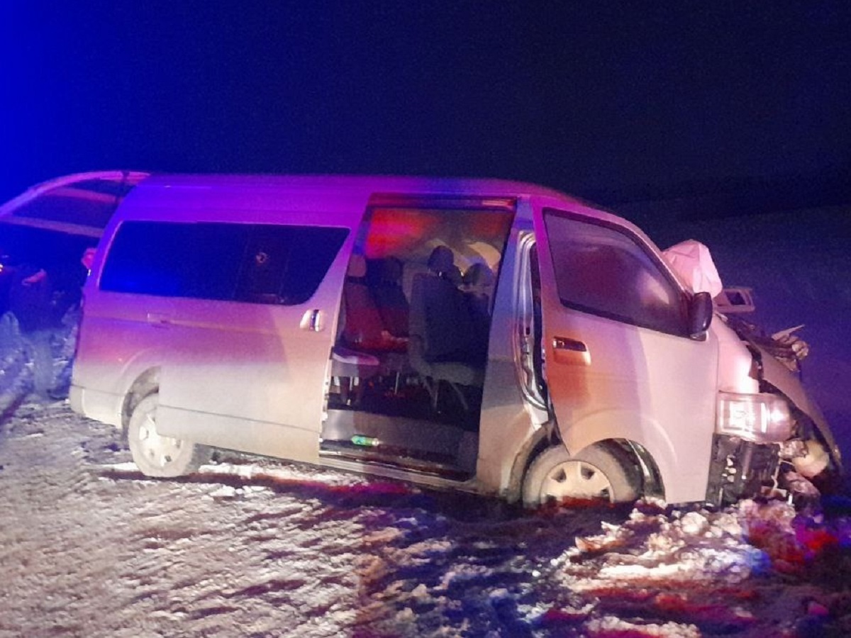 Ей управлял 37-летний мужчина. Произошло столкновение. В микроавтобусе находились 10 человек. Удар пришелся ему на переднюю часть.