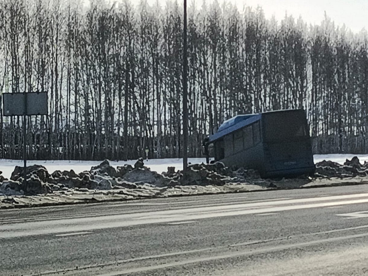 В результате сильного удара рейсовый автобус вылетел в кювет и получил серьезные механические повреждения. Судя по фотографиям с места аварии, у него выбило все двери и стекла.