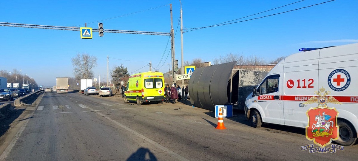 Утром 22 марта серьезное ДТП произошло в подмосковном Ногинске. Столкнулись два автомобиля, один из них после ДТП слетел с проезжей части и врезался в остановку общественного транспорта, где стояли люди.