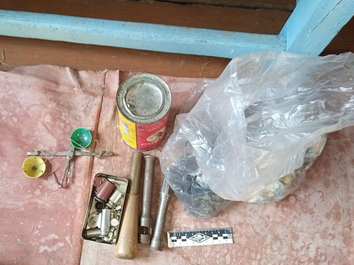 В ходе обыска был обнаружен целый арсенал опасных предметов и боеприпасов.