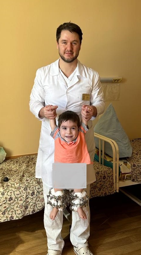 У Исмаила в ходе лечения уже удлинена правая нога на 2 см, левая — на 7 мм. С каждым днем конечность удлиняется на несколько миллиметров благодаря аппарату Илизарова, постепенно приближая ребенка к возрастной норме.