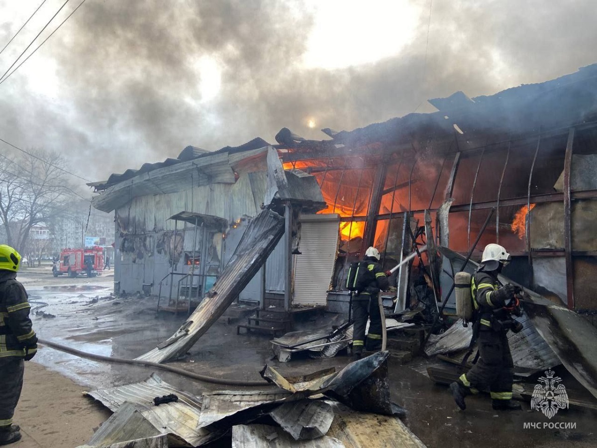 Мощный пожар уничтожил торговые ряды в Нижнем Новгороде