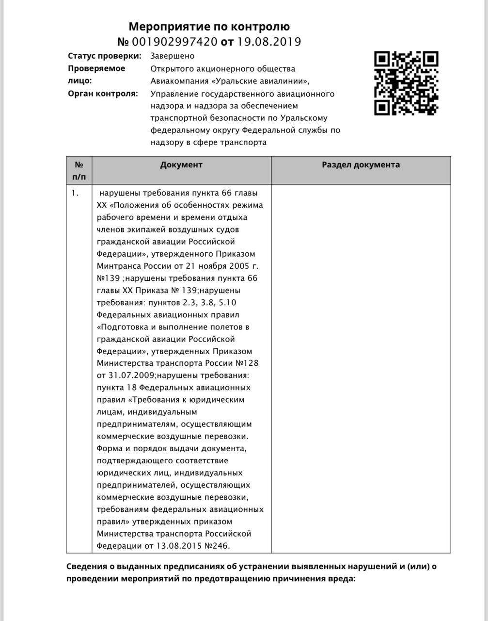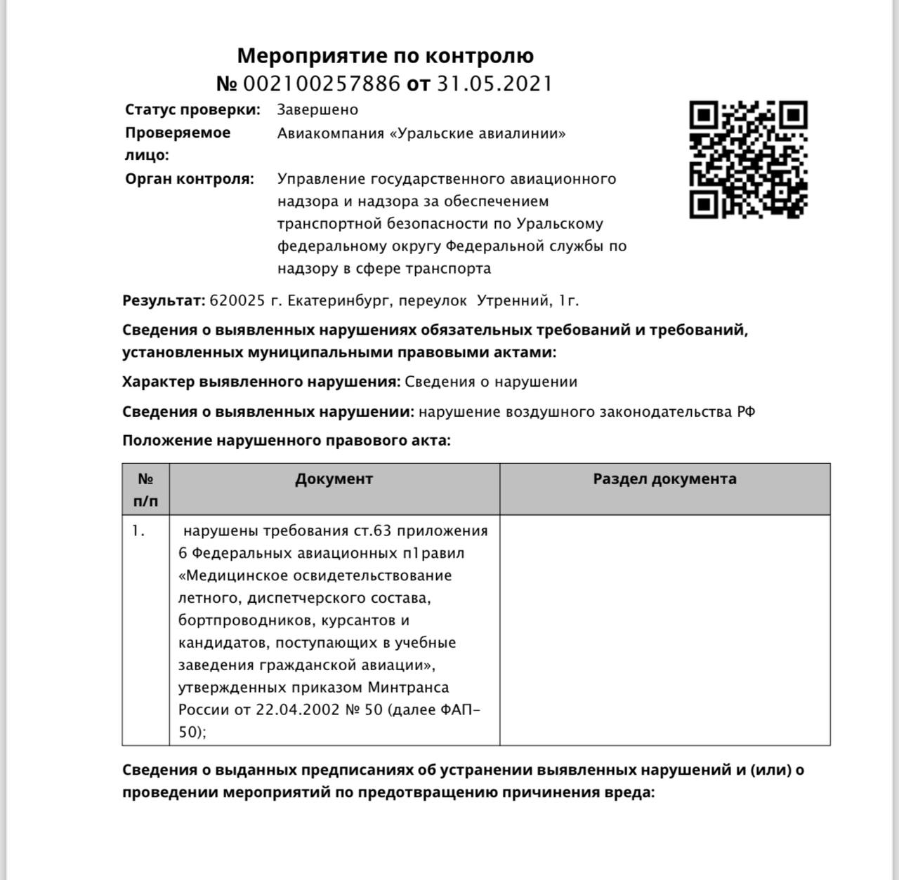 Кстати, после того, как самолет «Уральских авиалиний» в 2019 году сел в поле с кукурузой, Ространснадзор тоже нашел нарушения. Не было документа, подтверждающего изучение персоналом линейной станции технического обслуживания «Руководства по организации технического обслуживания». В табеле учета нет рабочего времени авиационной эскадрильи при прохождении подготовки.