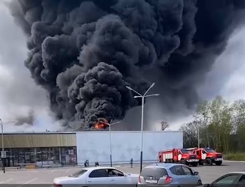 В Хабаровске днем 4 мая потушили крупный пожар, который полыхал по адресу: улица Краснореченская, в здании №213, в котором расположен гипермаркет «РемиСити»