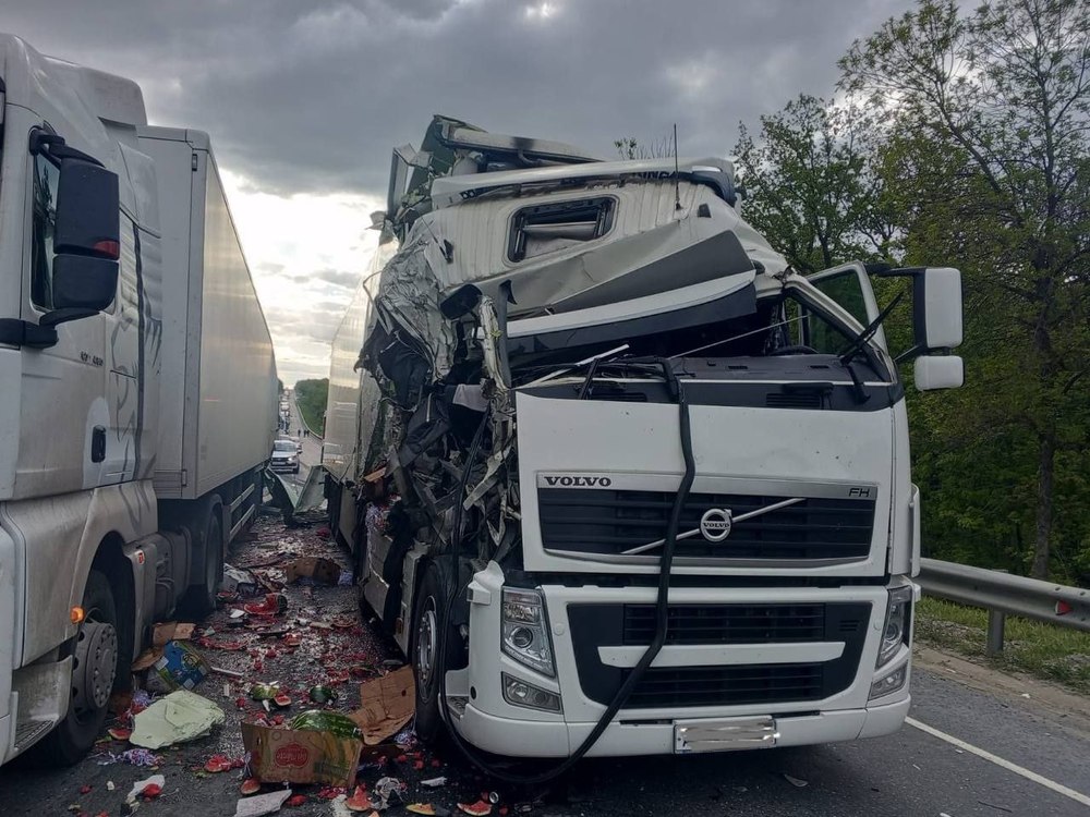 Вечером 4 мая в Вольском районе Саратовской области произошла серьезная дорожная авария с участием двух большегрузов