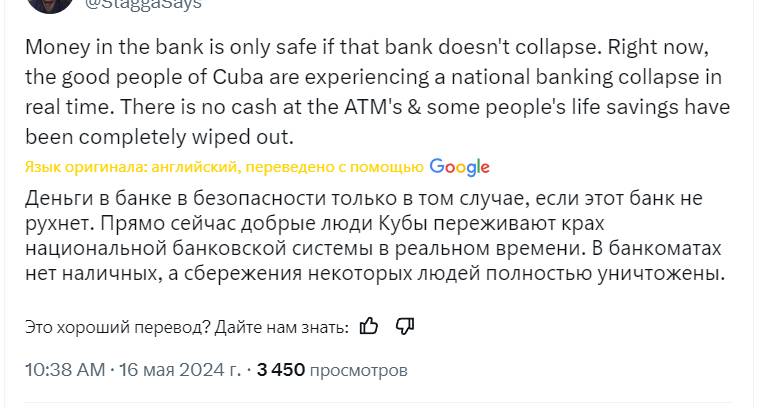По сообщениям из Кубы, банковская система страны рухнула, оставив жителей без доступа к своим сбережениям. Об этом свидетельствуют сообщения в социальных сетях и информация в англоязычных блогах.