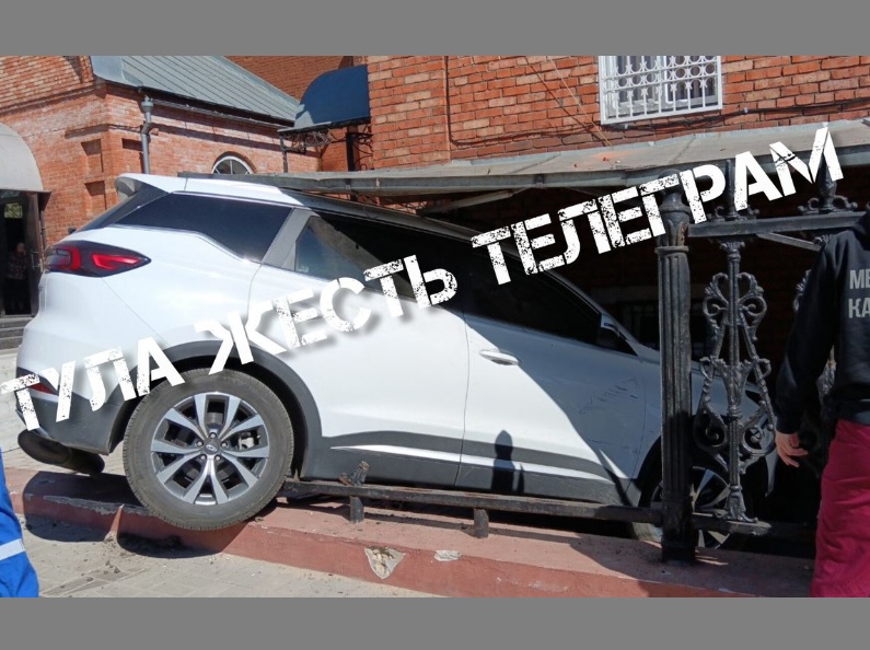 Авария с участием кроссовера Chery Tiggo произошла в Тула на улице Калинина. Иномарка на полном ходу врезалась в ограждение Покровского храма и снесла его.