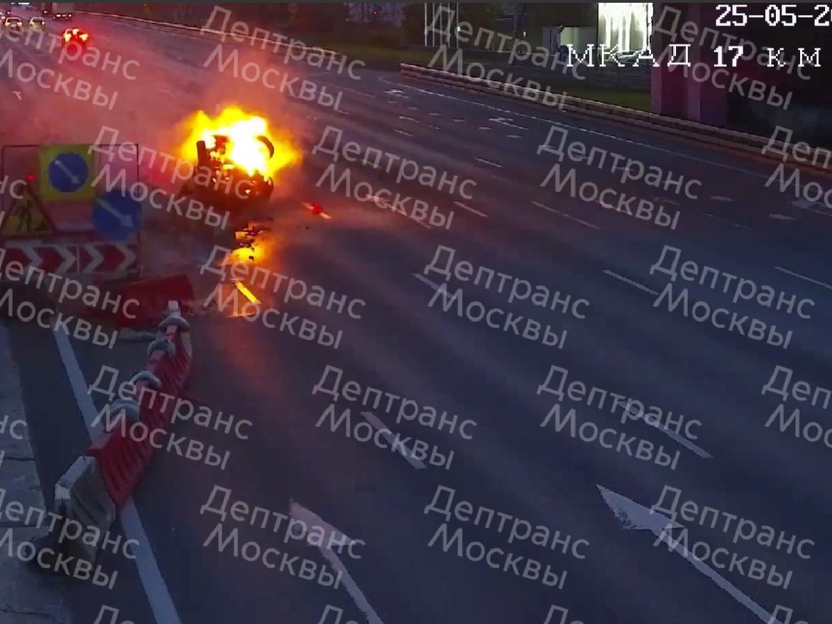 Ночью 25 мая автомобиль такси врезался в дорожное ограждение, перевернулся и вспыхнул. Об аварии сообщили в Telegram-канале Дептранса Москвы.