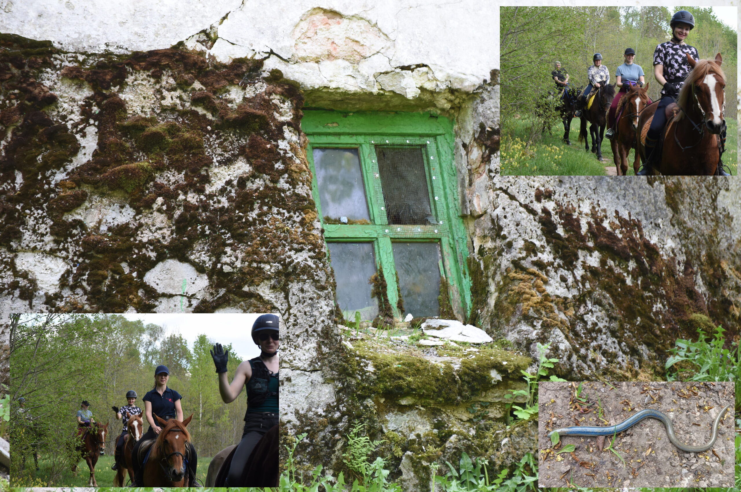 А чего стоит экологическая тропа вдоль Изборско-Мальской долины?! В Питер или за границу не надо ехать! Про лебедей я уже сказал, а ещё мы встретили на одном поле с десяток аистов, плюс цапель над рекой Смолкой. На другом берегу долины я вообще увидел в телеобъектив едущий цепочкой солдатский дозор на лошадях. Долго обсуждали – белые это или красные (всё же День пионерии за бортом)? Но через 15 минут обалдели – перед нами были русские амазонки на конях, которые, как и мы, любовались окрестностями, позировали на камеру и явно искали свои обереги. В конце дня ой как мы вспоминали про этих наездниц и их коней, захотелось поменяться местами.