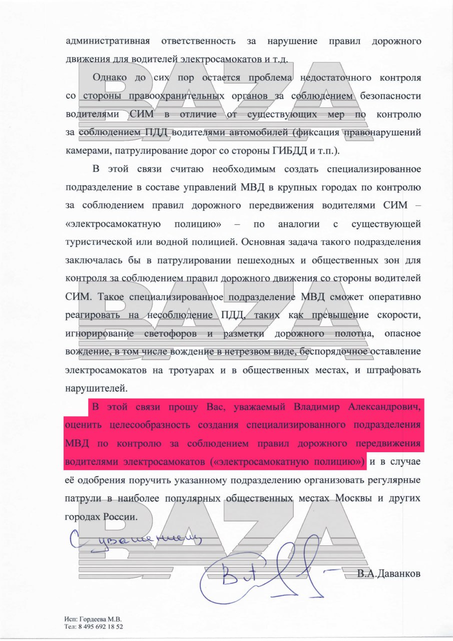 Чтобы решить эту проблему, Даванков предложил создать «электросамокатную полицию». По замыслу данный орган должен включать в себя специальные патрули, которые будут ходить в самых оживленных общественных местах российских городов, и контролировать ситуацию, чтобы пользователи электросамокатов не нарушали правила.