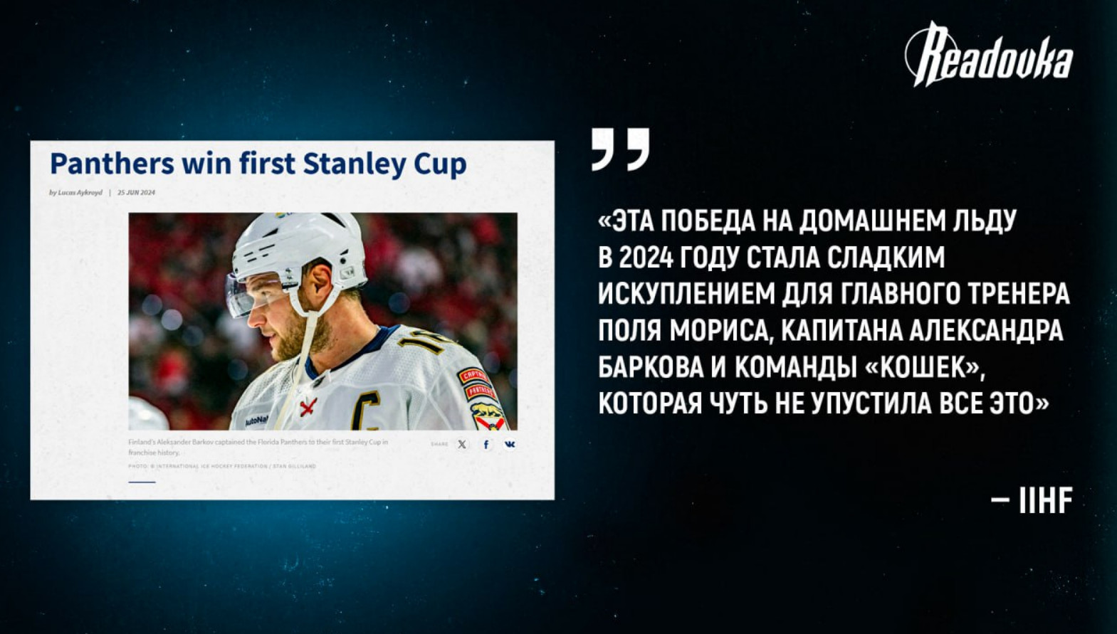 Международная федерация хоккея не поздравила российских игроков «Флорида Пантерз» с завоеванием Кубка Стэнли
