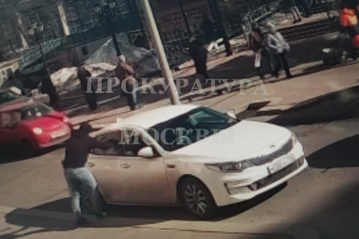 Автомобиль был припаркован на Малой Пироговсклй улице, водитель вышел и закрыл его. Но внезапно подбежал преступник и разбил окно. Его действия зафиксировала камера видеонаблюдения.