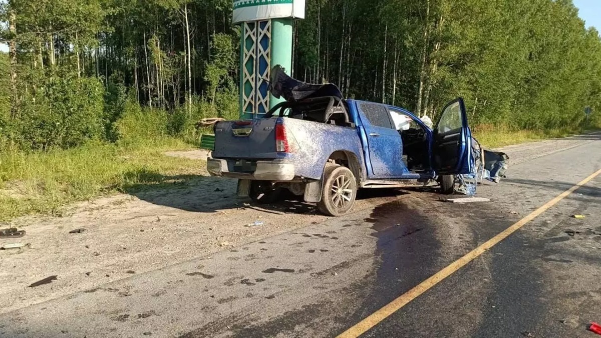 Авария случилась около 04:00 в понедельник на 702 километре автодороги. За рулем Toyota Hilux находился 24-летний молодой человек. Он выехал на «встречку» и врезался в MAN, который двигался по ней в этот момент.