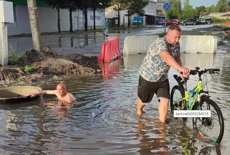 Школьник катался на велосипеде по улице Красной Армии. Он заметил большую лужу и решил промчаться по ней. Затея оказалась плохой: мальчик вместе с транспортом провалился под землю, потому что водная преграда на самом деле оказалась доверху заполненной водой траншеей. Коммунальщики планировали сделать в этом месте ливневку.