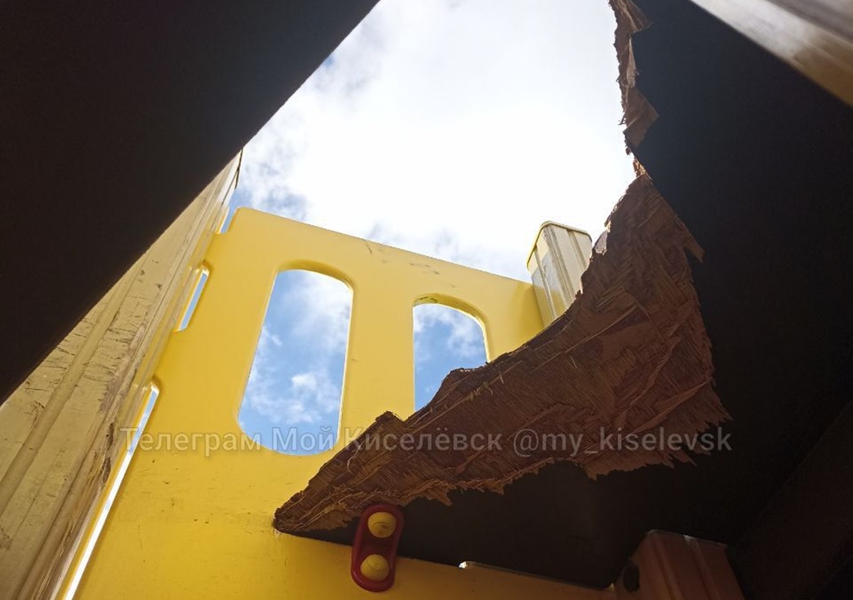 Детская площадка расположена во дворе рядом с ФОК, на ней играют малыши из нескольких домов по Западному проезду города Киселевска. Ребенок поднялся на горку и не заметил, что в полу – дыра.