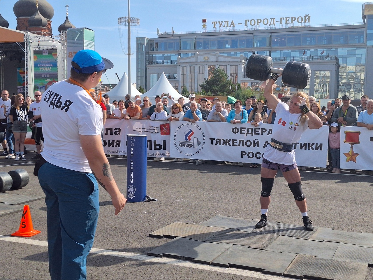 Так, на площади Ленина прошли традиционные соревнования по силовому экстриму «Сила Тулы». Они проходят уже в юбилейный 20 раз. В связи с этим организаторы решили внести новшества в конкурс. Традиционный подъем тяжестей остался. Участники тягали гантели весом от 80 до100 кг и поднимали тяжелый мешок весом до 120 кг. К нему добавили прохождение дистанции с утяжелителем в двух руках весом до 130 кг каждый. Самым сложным из новых конкурсов стал конкурс «Ступени силы». Участникам нужно было подняться на пьедестал с весом до 220 кг в руках.