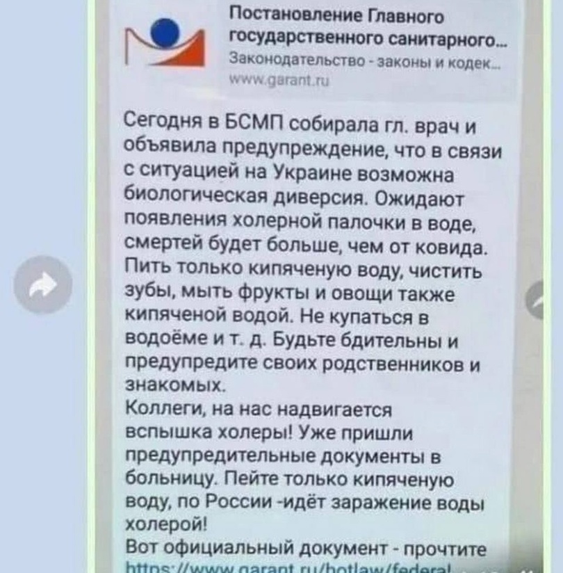 В сети Интернет неизвестные провели дезинформационную операцию среди смоленских медиков, работающих в скорой. В общие чаты врачей начали приходить сообщения о вспышке холеры в регионе, связанной с заражением воды холерной палочкой.