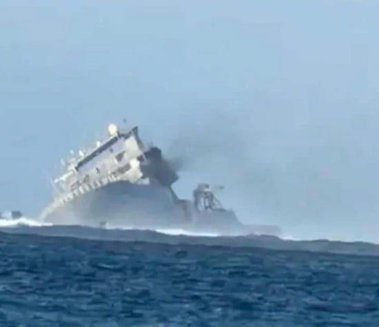 Несмотря на попытки самостоятельно справиться с ситуацией, судно дало сильный крен. Было принято решение об эвакуации экипажа. 75 человек добирались до берега на спасательных плотах и лодках в течение пяти часов из-за «чрезвычайно сложных условий». Оставленный экипажем, корабль загорелся и затонул.