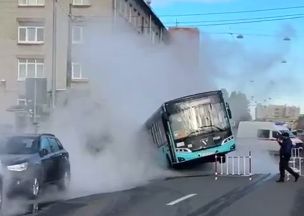 Автобус с пассажирами в Санкт-Петербурге провалился в яму с кипятком