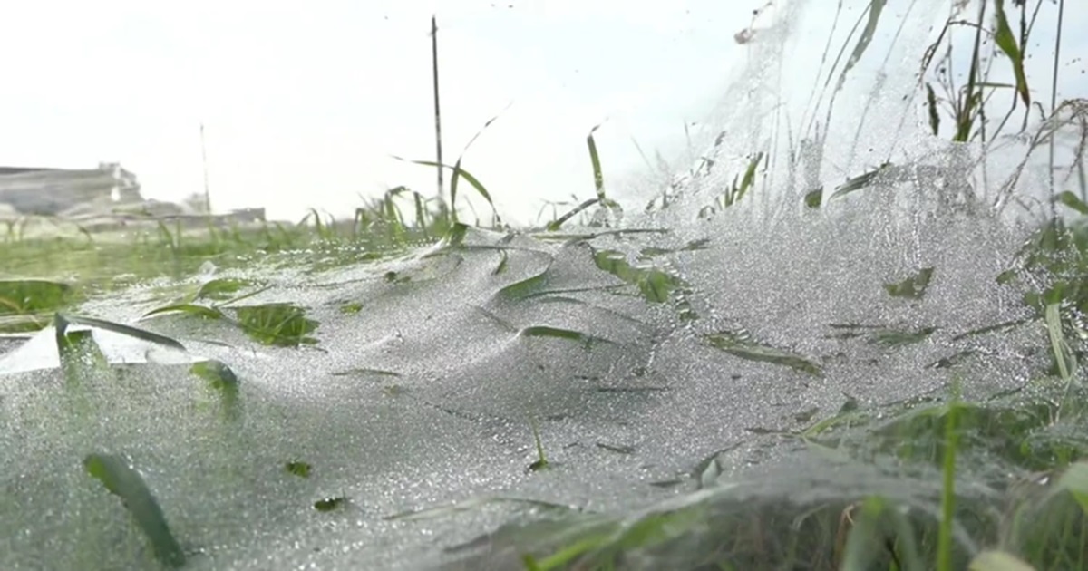 Миллионы пауков накрыли поле в Италии гигантской сетью из паутины