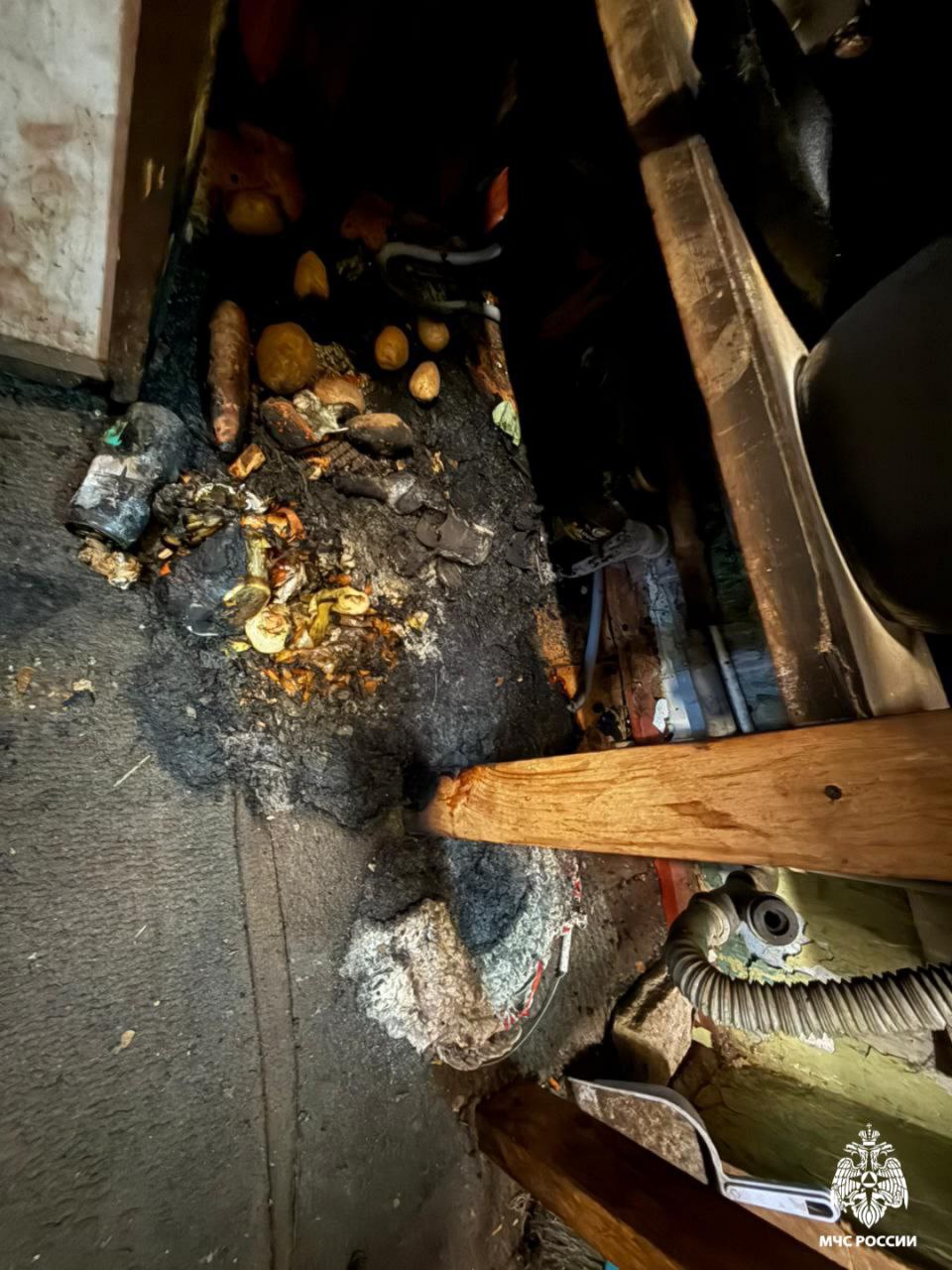 Оказалось, жилец нечаянно поджег мусор в ведре.  Теперь в кухне придется делать ремонт: помещение обгорело и закопчено.