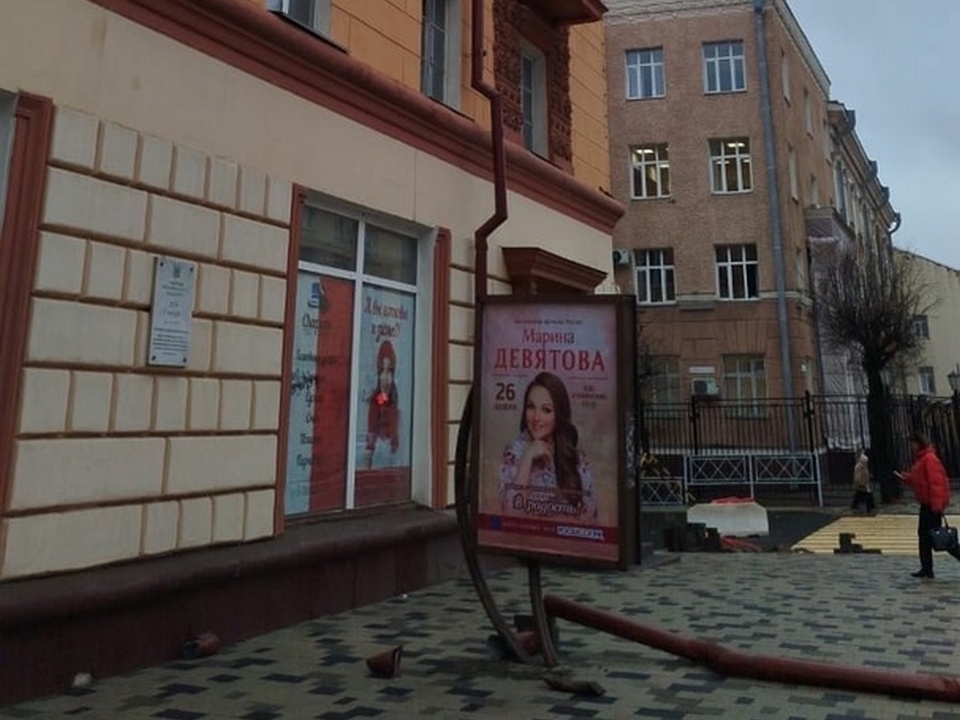 Поэтому закономерно, что, когда водосточная труба на доме № 39/11 – памятнике архитектуры, расположенном на улице Большая Советская рухнула, смоляне предположили, что это связано с последствиями непогоды.
