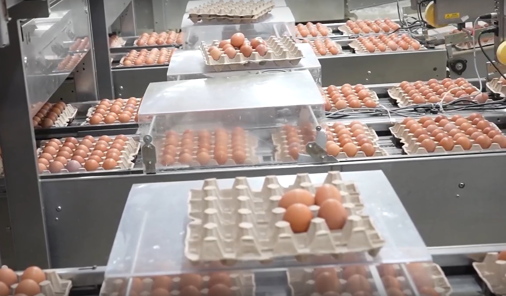 - У нас здесь стоят клетки с уклоном. Яйцо скатывается до системы стоп-яйцо, остывает и подсыхает, а после того как специальный тросик-автомат его отпускает, оно попадает на ленту яйцесбора и по ней уезжает в распределительный центр. Установленное оборудование - совместного производства Германии, Китая и России. От Германии фактически выступила дочерняя компания, которая частично производит оборудование в России. Мы специально выбрали такой вариант из-за санкций, - рассказал Константин Демидов.