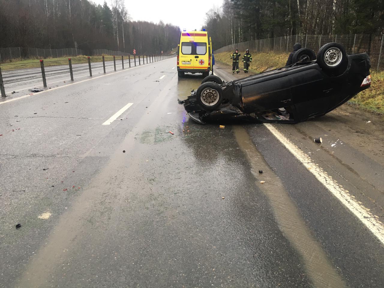 «Лада Гранта» перевернулась на крышу на трассе в Смоленской области