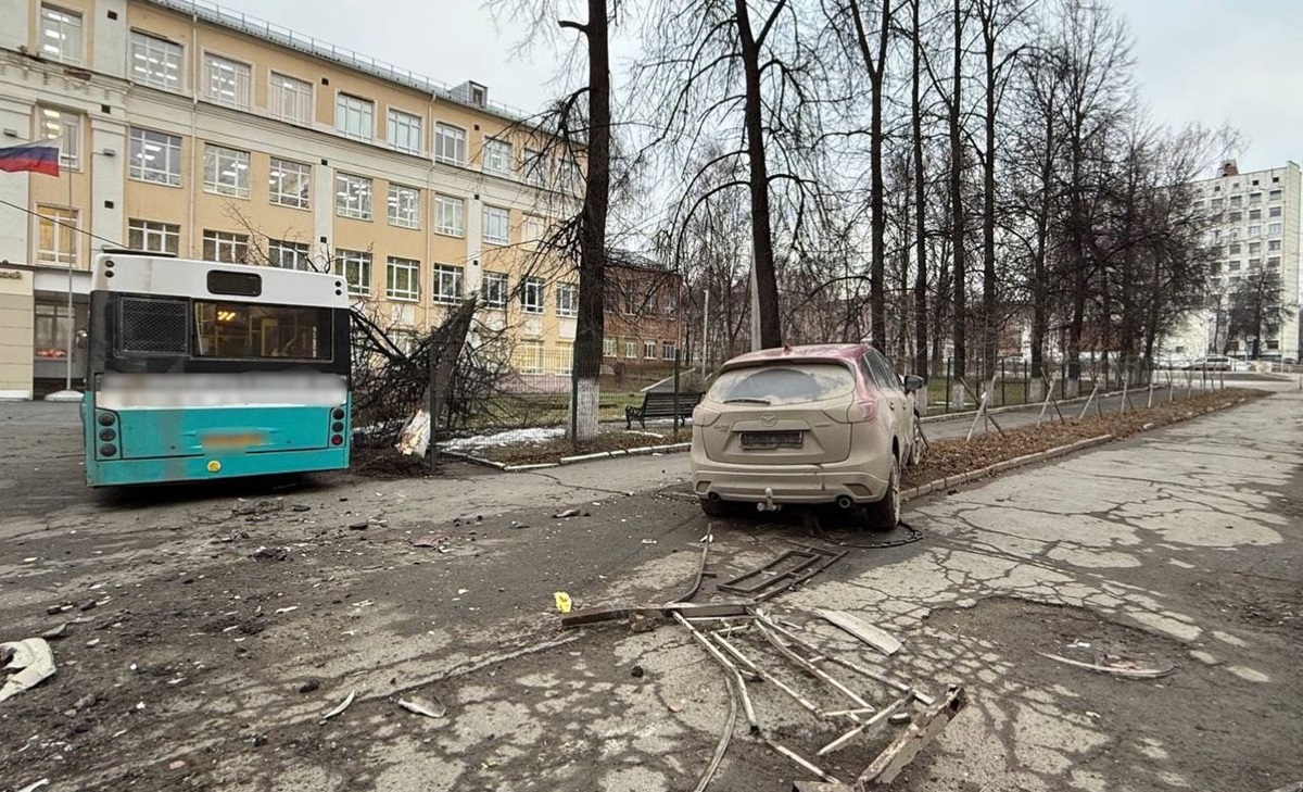 Автобус с пассажирами в Ижевске протаранил забор лицея и въехал внутрь