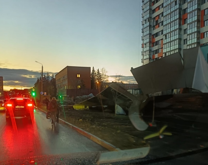 Также в Туле с домов поносило крыши, а одна из них на улице Оборонной снесла рекламный щит. Он рухнул на дорогу.